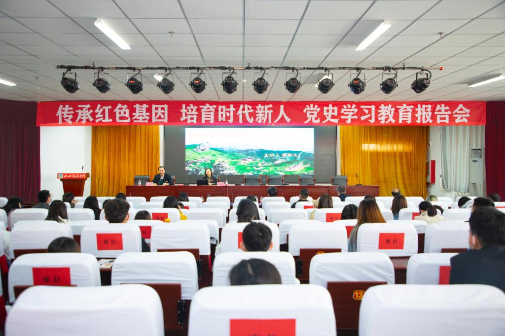 为推动我院党史学习教育扎实开展,学院党委于4月13日邀请八路军太行纪念馆第一代讲解员,首席讲解崔韶光老师作“传承红色基因 培育时代新人”党史学习教育报告会。学院党委副书记张春有主持报告会,院长梁卫国,党委委员、宣传统战部部长张玉福,党委委员、学生工作部部长辛书贤参会,参加会议的还有思想政治理论课教学部全体教师、分团委书记、“青马工程”培训班学员、专职辅导员、今年新入职的教工和学生代表。