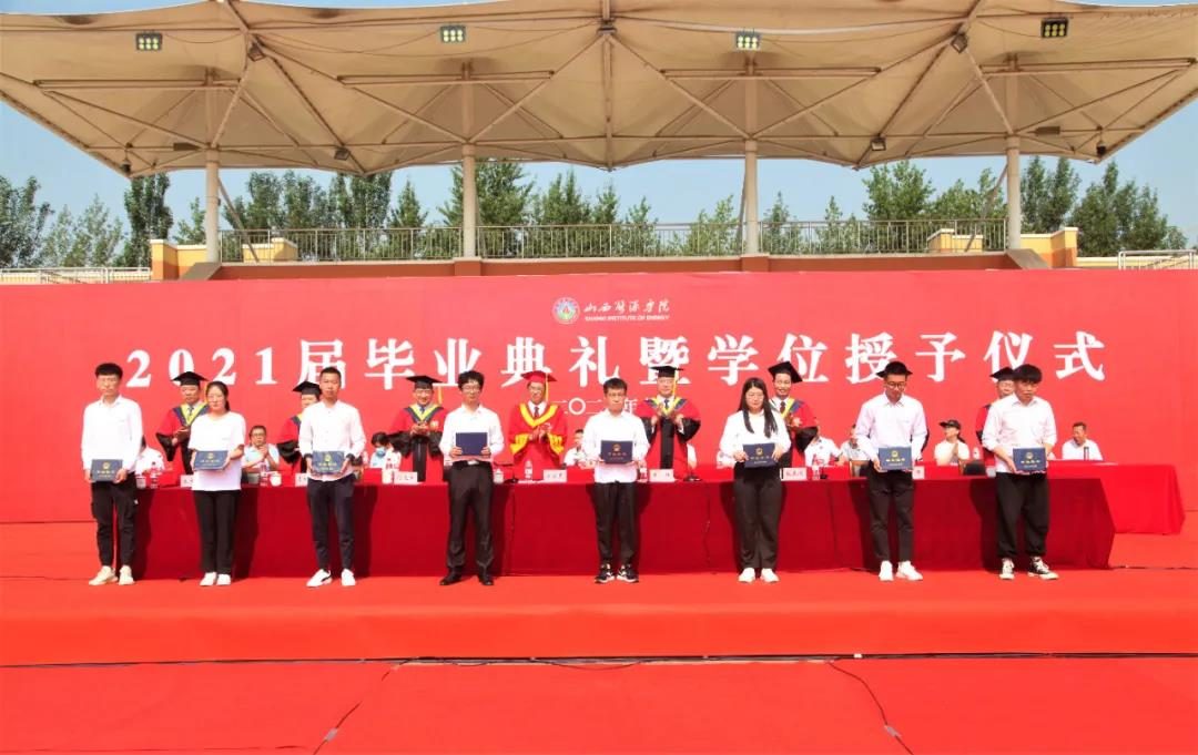典礼期间副院长孟文俊教授宣读了2021届获得毕业资格、学士学位资格的学生名单。张春有副书记宣读学院《关于表彰2021届优秀毕业生的决定》。校领导共同为毕业生代表颁发了毕业证书,学位证书并进行了学位授予,并为优秀毕业生代表颁发了荣誉证书。