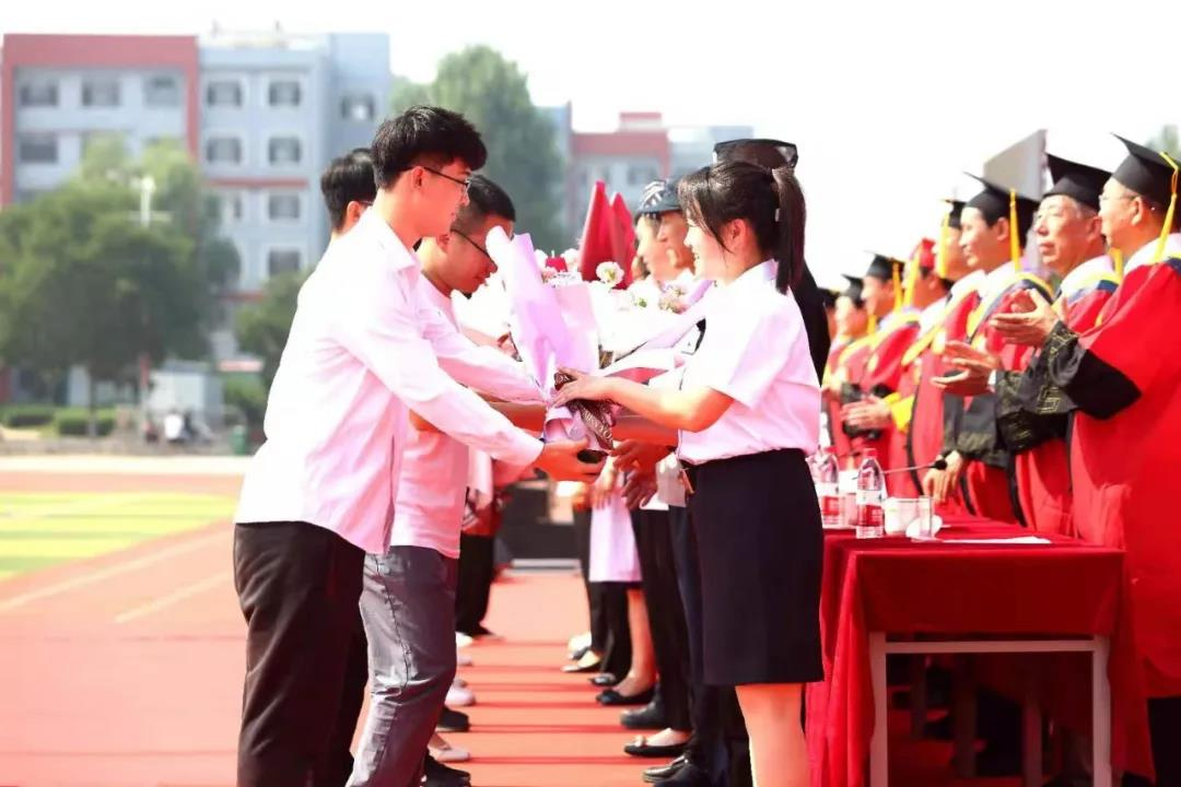 接着,2021届毕业生代表李启兴同学,教师代表董光华教授先后作了发言。毕业生代表向四年来为bat365官网发展奉献在各个工作岗位上的教职工代表献花致敬,感谢他们的无私奉献与关心支持。