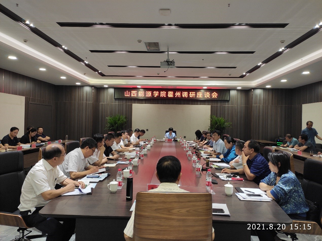 梁卫国院长首先对霍州市委、市政府对校地合作、产教融合的大力支持表示感谢,强调霍州市自然资源丰富、地理位置优越、文化历史悠久,尤其煤电产业为山西经济社会发展发挥了重要的作用。面对当前能源革命综合改革试点形式,依托霍州良好的日照条件和丰富的石英砂资源,大力发展光伏新能源产业是霍州建设能源革命先行区的可行路径。李桂平副院长介绍了学院在学科建设、技术创新、成果转化方面的优势,结合双方领导达成的共识安排更深入的交流和紧密的沟通,推动校地合作、校企合作真正落到实处,为霍州市经济转型发展、综合改革试点做出贡献。孟文俊副院长结合考察调研情况,强调了新能源产业在能源革命转型发展中的重要作用,围绕新能源延伸产业链将为霍州市经济社会转型发展提供重要的支撑作用。学院相关部门负责人与企业负责同志先后发言,就校企合作领域、技术创新方向、人才培养模式等方面进行了深入交流,探索在智慧能源、煤基新材料、智能化装备、节能环保等领域合作的可行性,形成了校企合作初步意向。