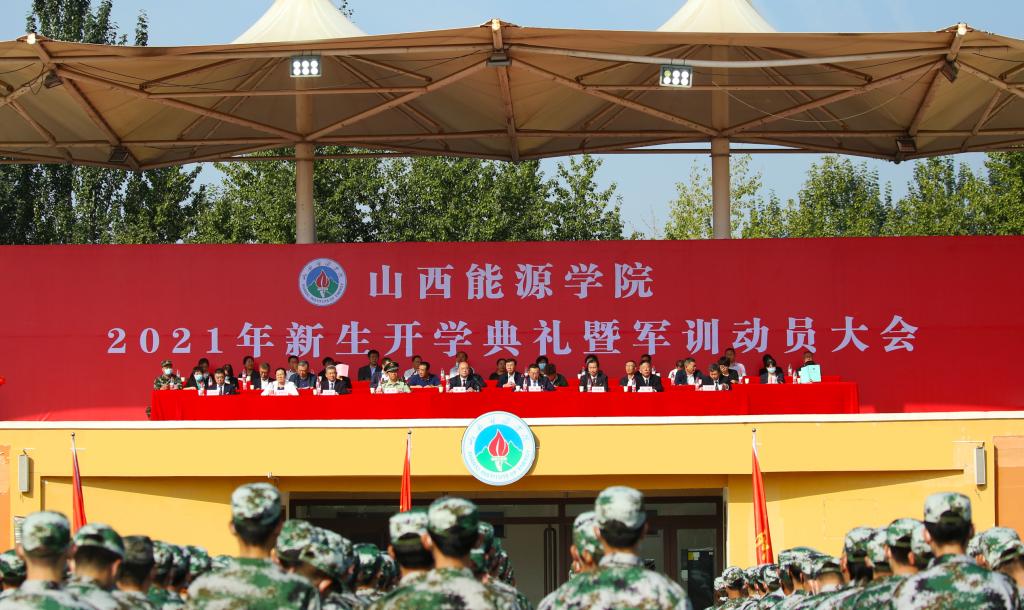 党委书记董峰在主持讲话中指出:今年是中国共产党建党一百周年,是国家实施“十四五”规划、开启全面建设社会主义现代化国家新征程的第一年,是山西省全方位推进高质量发展、转型出雏形的开局之年,也是我院不断推进内涵式发展,凝练鲜明办学特色的奋进之年,刚刚踏入校园的新生将伴随国家能源革命和山西经济社会发展而成长,并且最终将成为中国引领能源革命和实现第二个“百年目标”向的中坚力量。他向同学们提出了四点期许,一是希望同学们增强历史自觉,筑牢信仰之基;二是希望同学们传承红色基因,赓续精神谱系;三是希望同学们树立正确的人生观价值观,铸就精彩人生;四是希望同学们紧随能源革命脚步,争当栋梁之才。同时,董峰书记为同学们迎接即将到来的军训提出了宝贵建议,希望大家以严谨的态度、顽强的意志、饱满的精神和昂扬的斗志投入到军训中,严于律己、学会适应、学会吃亏、敢于吃苦,以优良的成绩完成好这次军训任务。