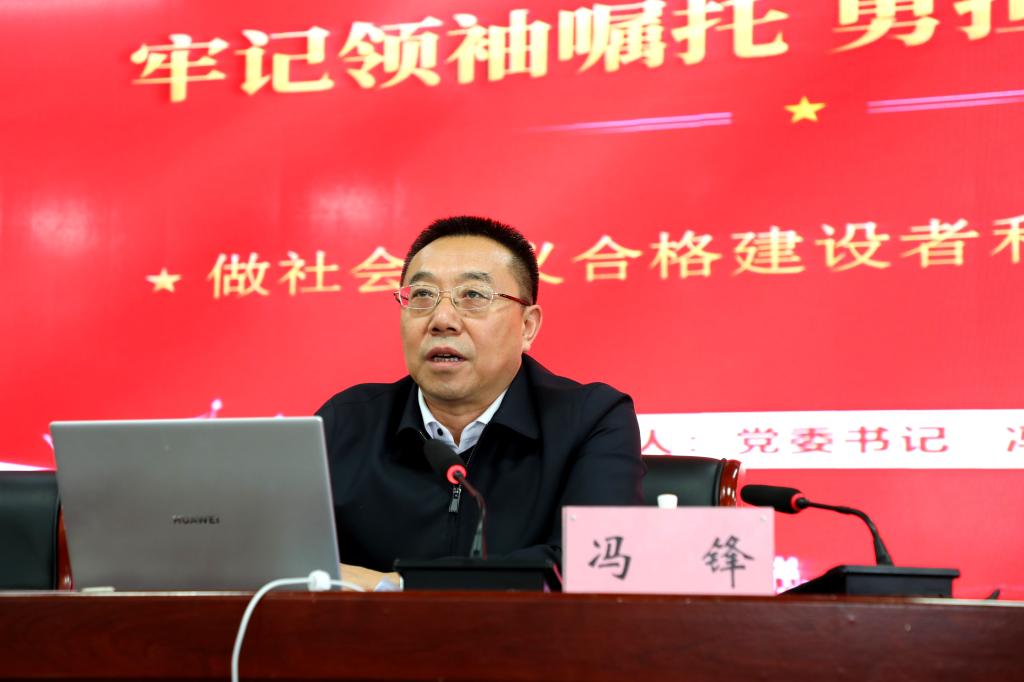 冯锋以“回顾习近平总书记三次考察山西之行”、“领会习近平总书记考察调研山西重要指示精神”、“牢记领袖教导 勇担时代责任”三个方面为绪,深入学习领会习近平总书记重要指示精神,鼓励广大学生砥砺拼搏奉献,在攀登知识高峰中追求卓越,在肩负时代重任时行胜于言,做好一名社会主义合格建设者和可靠接班人。