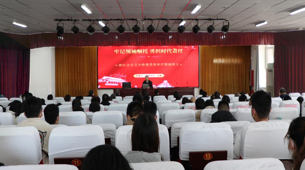 为深入学习宣传贯彻习近平总书记考察调研山西重要指示精神,认真回顾习近平总书记的三次“山西之行”,2022年2月21日下午,党委书记冯锋在综合楼二层报告厅以《牢记领袖嘱托 勇担时代责任 做社会主义合格建设者和可靠接班人》为题为师生讲授开学第一课暨思政课首讲。各党总支书记、直属党支部书记、各部门负责人以及思政教师、学生代表近100人聆听了这堂课。冯国瑞副院长(主持行政工作)主持“开学第一课”。