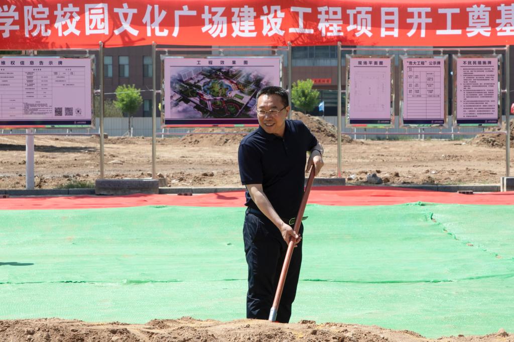 最后,冯锋书记宣布校园文化广场建设工程开工,并与其他领导一起共同为工程建设培土奠基。