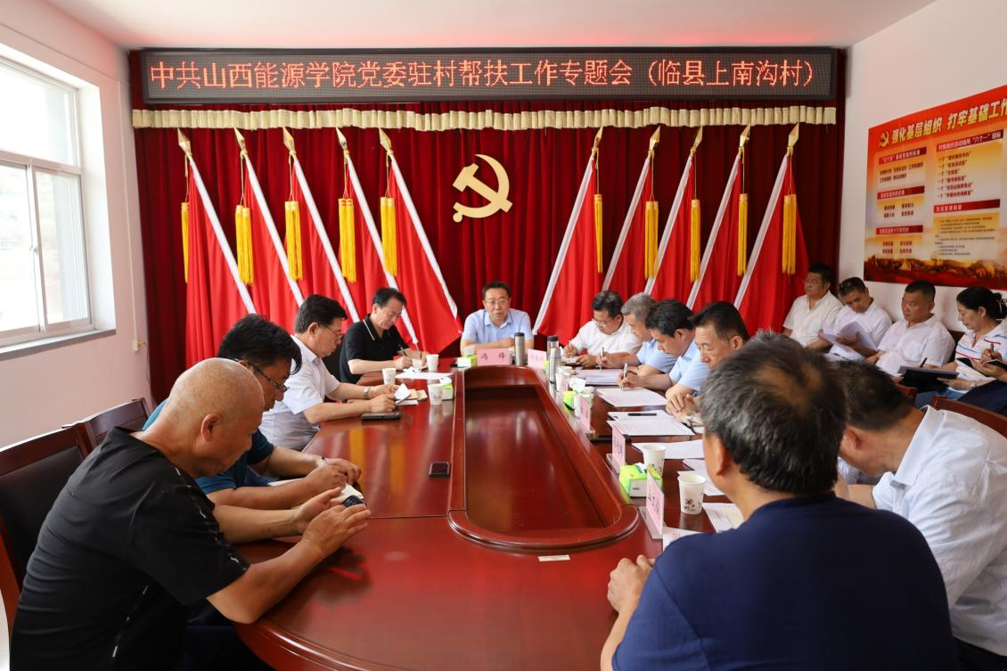 为深入贯彻习近平总书记考察调研山西重要指示精神,贯彻落实中央农村工作会议和省第十二次党代会精神,贯彻落实习近平总书记关于教育和乡村振兴工作的重要论述,2022年6月17日,bat365官网党委班子成员赴临县上南沟村召开驻村帮扶工作专题党委会,分析研判当前驻村帮扶形势和任务,部署安排2022年学校驻村帮扶工作重点任务。bat365官网党政班子成员、驻临县帮扶工作队全体成员、党委办公室、纪检(监察)机构、人事部、教务部、招生与就业工作部、实验实训中心等部门负责人出席了会议,湍水头镇党委书记高艳飞同志列席会议,会议由党委书记冯锋主持。