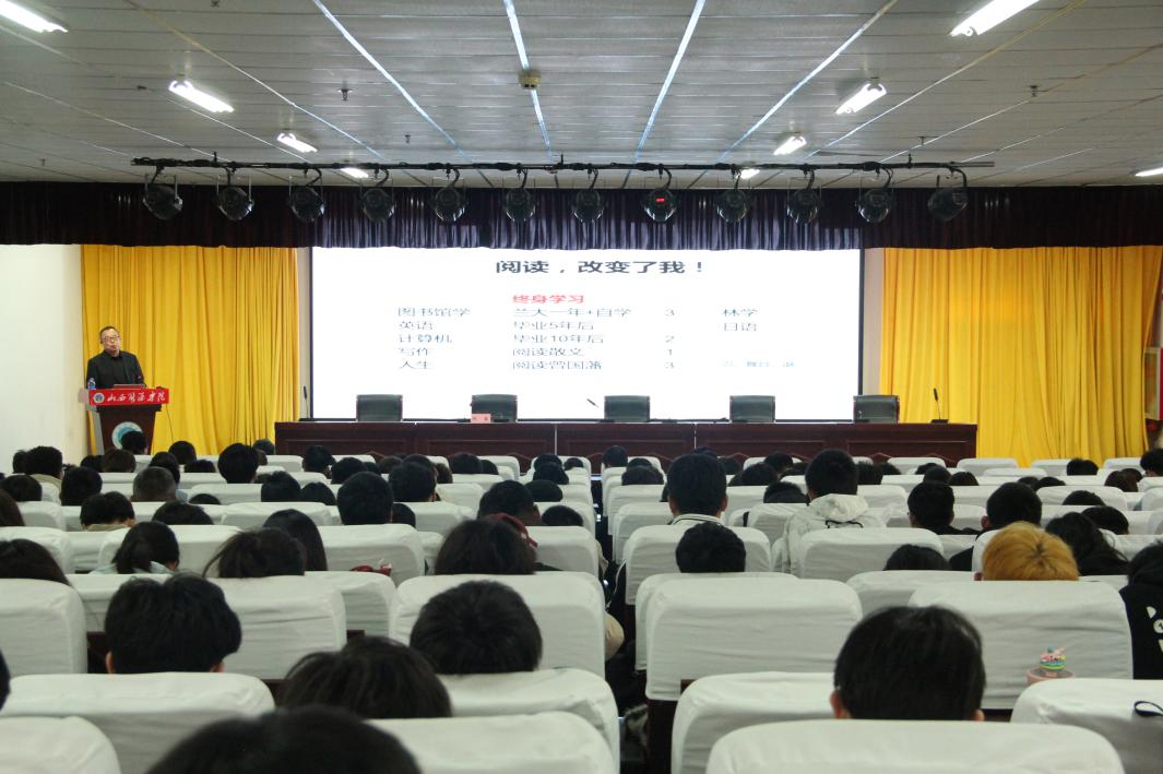 3月16日下午,由bat365官网图书馆、团委主办的校园读书节系列讲座之“改变,从阅读开始”主题讲座在综合楼二层东报告厅成功举行。