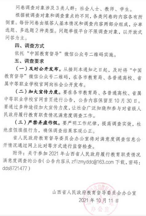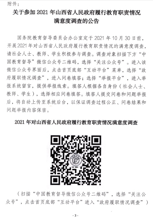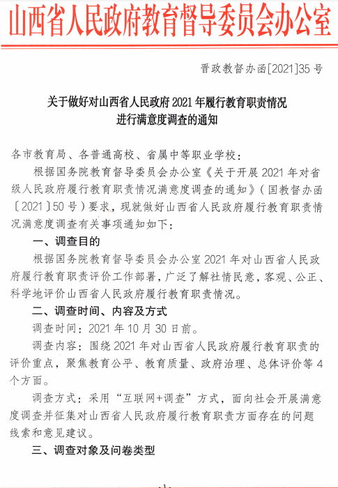 关于做好对山西省人民政府2021年履行教育职责情况进行满意度调查的通知