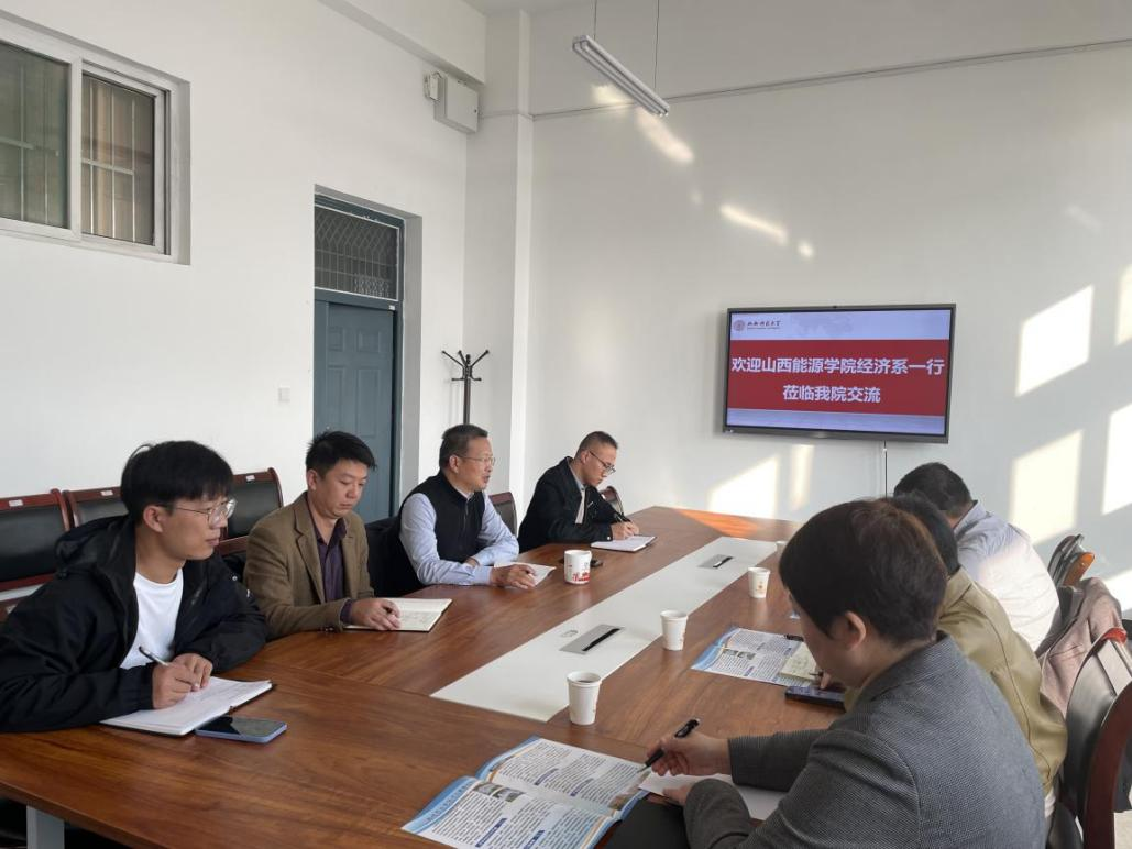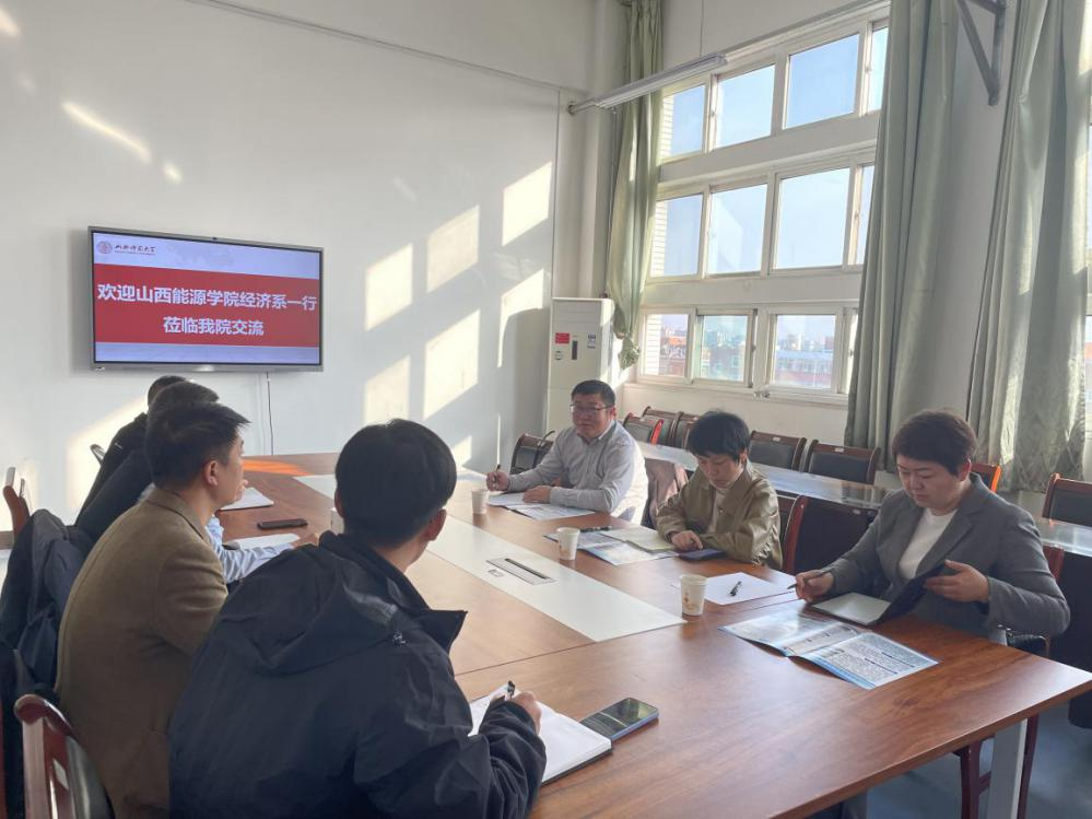 为了进一步推进经济系本科教学合格评估工作,2023年10月31日,经济系行政负责人戴国宝副教授、综合办公室主任曹云老师、高层次优秀人才崔泽园副教授、财务管理专业教研室主任郭嫣然老师一行前往山西师范大学经济与管理学院进行交流学习,受到了山西师范大学经济与管理学院院长邰秀军教授、工商管理系主任陈天老师、经济系主任张百顺老师和应急管理系主任白俊老师的热情接待。