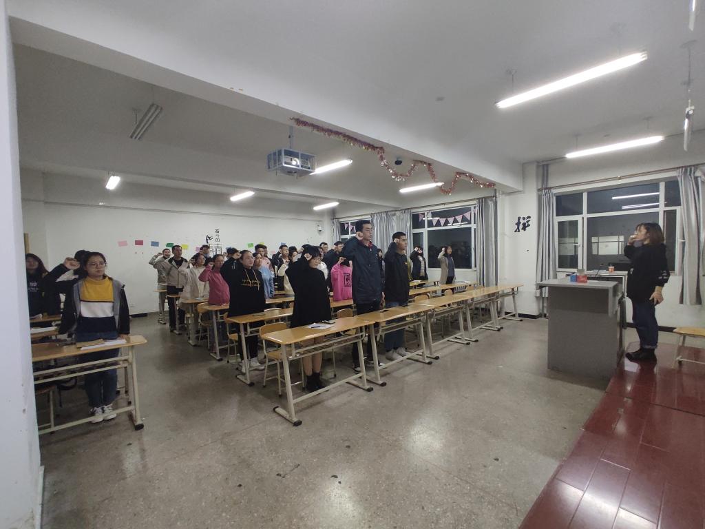 同日下午,经济系、管理系党总支两个学生党支部也开展了以“弘扬爱国主义精神”为主题的党日活动。活动中首先观看微视频《决胜:为人民而战》,了解武汉人民和党中央如何打赢疫情防控战。第二项开展了知识竞答,引导党员自主学习。第三项全体党员起立奏国歌,深刻铭记祖国历史,感受爱国情怀。最后,全体学生党员面对党旗庄严宣誓,重温入党誓词,终生恪守入党誓词的人生真谛。