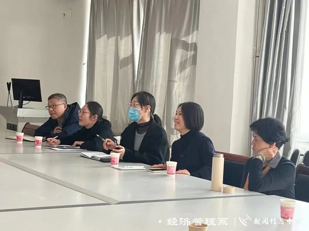 2023年3月8日上午,经济系行政负责人戴国宝、教学副主任徐英、综合办公室主任曹云、三个教研室主任及骨干教师一行来到晋中学院经济管理系开展学术交流活动。晋中学院经济管理系主任刘亚丽、主持工作的党总支副书记冀里萃、副主任赵云海与各教研室教师代表接待交流。