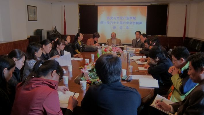 10月27日下午,历史与文化产业学院召开师生座谈会,学习十七届六中全会精神。座谈会由院党委书记贾海宁主持。师生发言摘要如下: