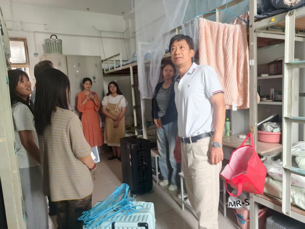 学院领导走进宿舍,亲切看望刚刚入学的同学们,热情询问大家的入住情况。他们将细致的关怀送到新生身边,让初入校园的新生切实感受到如同家一般的温暖与归属感。