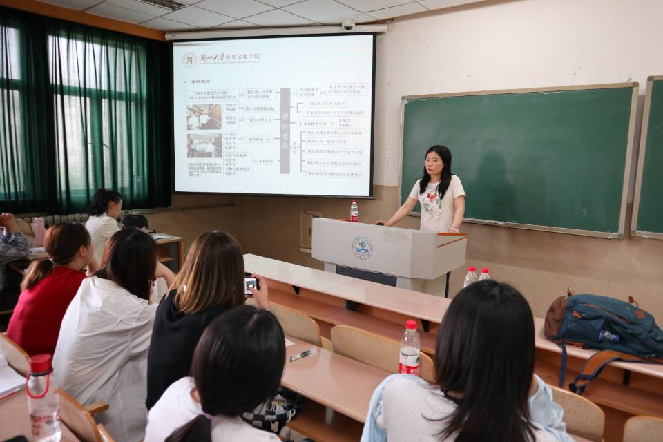 5月24日上午十点,宣讲活动正式开始,在观看兰州大学历史文化学院宣传片后,同学们对于兰州大学办学历史、专业设置等形成了整体的认识。随后,魏小萍老师就历史学专业考研内容、学科设置以及招生现状等问题进行了详细的讲解。此次的招生宣讲重点讲述了兰州大学的人才培养体系及就业情况,展示了学院学术交流与国际化发展的进程,使同学们感受到了兰州大学历史文化学院浓厚的学术气息。宣讲会现场气氛热烈,同学们都认真听讲。在宣讲会的最后,同学们纷纷提出了自己对于兰州大学历史文化学院研究生现状的疑问,并得到了老师细致的解答。