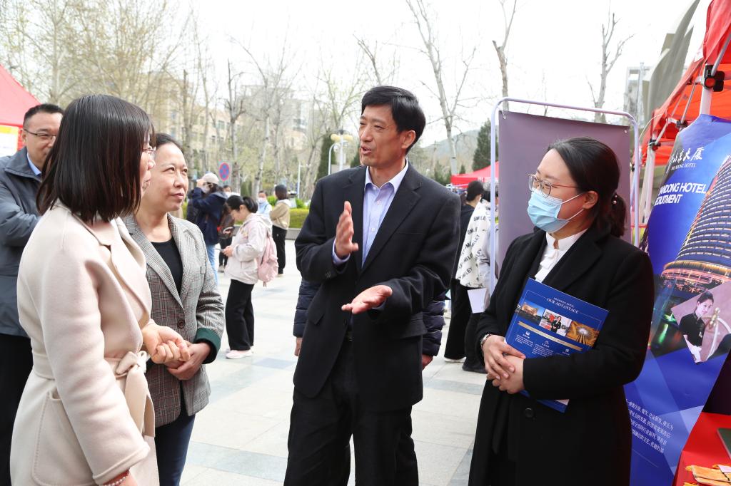 为全面贯彻落实教育部“春季促就业攻坚行动”,全力促进毕业生充分、高质量就业,3月24日,由开云kaiyun登录入口、济南市市中区人力资源和社会保障局联合主办的2023届毕业生专场招聘会在舜耕校区举行。学校党委副书记杨景波进行了线上指导,市中区人力资源和社会保障局、学校党委学生工作部(处)、团委、开云kaiyun登录入口相关负责人亲临招聘会。