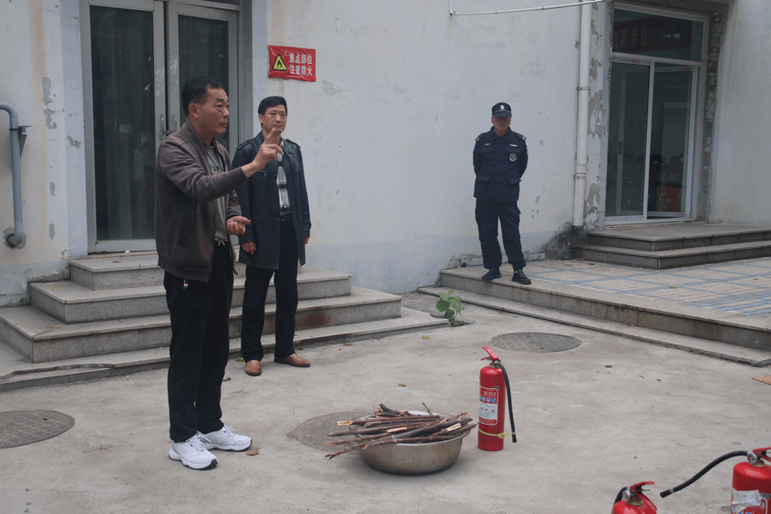 在室外演习场,张绍春实地为大家演示了灭火器使用方法和操作要领,并让各位师生分批操作,掌握灭火技能。