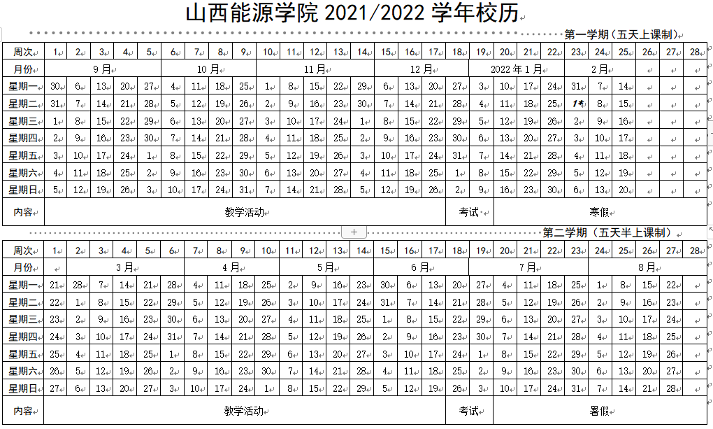 bat365中文官方网站2021/2022学年校历