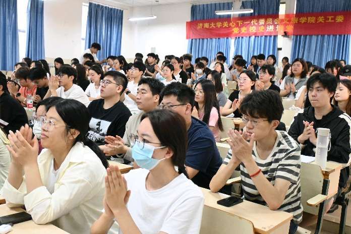 活动伊始,孟德洋发表了热情洋溢的致辞。他首先代表学院向济南老年人大学和开云kaiyun登录入口关工委的领导和同志们表示热烈的欢迎和衷心的感谢。他指出,红色文化是我们党的宝贵精神财富,也是激励我们前进的强大动力。此次活动旨在通过丰富多彩的形式,将红色文化、党史校史融入学生日常教育中,活动不仅是一次红色文化盛宴,更是一次对青年学生进行爱国主义教育的生动实践。他强调,学院一直高度重视爱国主义教育和爱校荣校教育,他希望广大师生通过此次活动,深刻领悟红色文化的内涵,将红色文化精神内化于心、外化于行,共同为传承红色基因、弘扬爱国主义精神贡献力量。