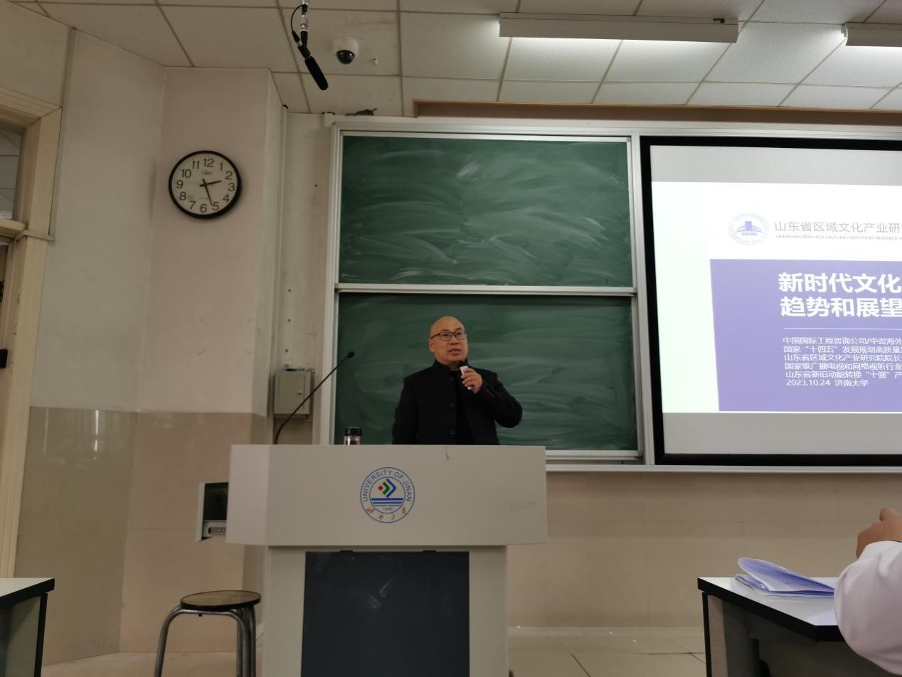 为深入学习党的二十大精神,贯彻习近平新时代中国特色社会主义思想融入学科教育。在开云kaiyun登录入口建校75周年之际,10月26日下午,开云kaiyun登录入口邀请孙吉国研究员进行了《新时代我国文化产业实现高质量发展的路径选择》的主题报告。报告由副院长马修伦主持,文化经营管理系支部书记赵斐、主任宁秀丽、教师代表、文管系学生参加了活动。