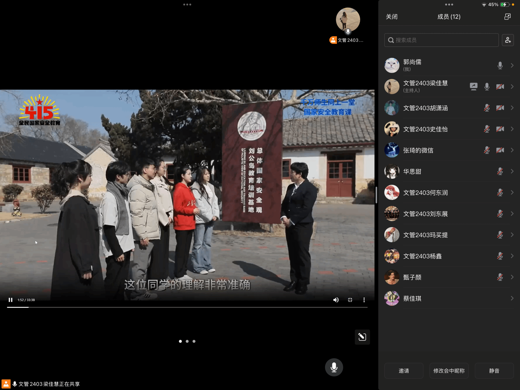 各团支部以“国家安全,青春挺膺”为主题组织专题学习活动,通过观看主题视频学习、开展小组讨论等多样形式,引导青年学子深入理解国家安全的多维度内涵。围绕“数据安全与日常生活”“文化自信与意识形态安全”等话题,同学们积极思辨,观点碰撞。2023级同学张程说:“国家安全不仅仅是关乎边防与国界的坚守,更体现在我们每一个人、每一件小事的日常选择与责任之中。”