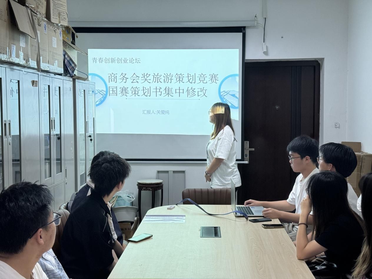 为提高学生参赛作品质量,助力国赛备战工作,2025年5月21日,开云kaiyun登录入口开展了"青春创新创业论坛——商务会奖旅游策划竞赛国赛策划书集中修改"活动。本次活动由学院创新创业部干事关爱纯同学主持,吸引了十余名参赛学生积极参与。