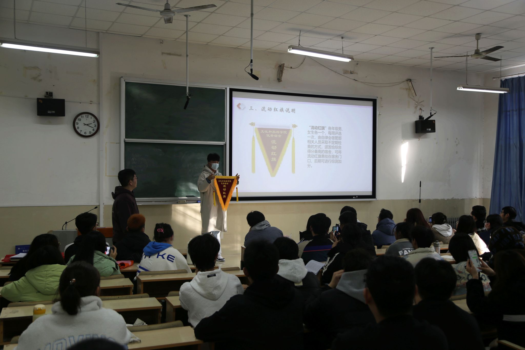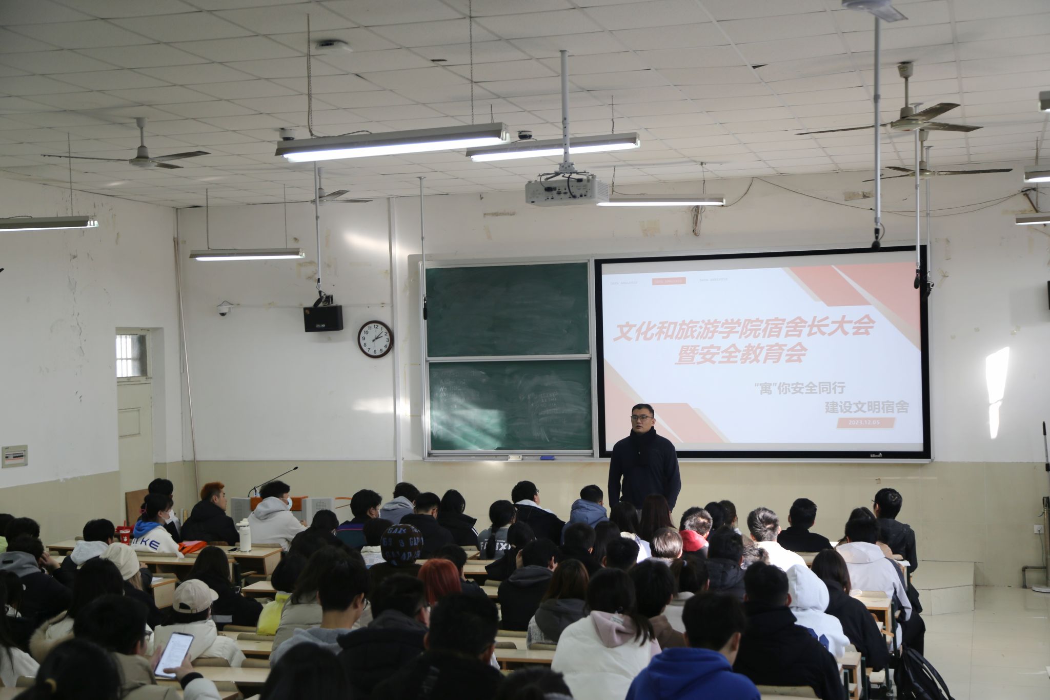 会议围绕宿舍安全整治、宿舍长职责、宿舍建设、宿舍文化节四个方面展开。首先,学办老师传达了学院党委对本次大会的嘱托与要求,就近期安全卫生检查中存在的突出问题进行了强调,对检查中的优秀宿舍进行了表扬,对不合格宿舍提出了整改措施。特别是宿舍物品摆放、卫生死角清理、以及宿舍内严禁吸烟酗酒、严禁使用大功率电器、私拉电线等问题进行了重点强调,叮嘱宿舍长们一定要监督和提醒到宿舍成员,养成人走断电的好习惯。其次是防诈骗方面,务必树牢反诈意识,务必下载并注册反诈App,提示学生时刻注意防骗,“不转账,不上当”,谨防诈骗。最近因天气寒冷生病的学生较多,希望学生们注意个人卫生,身体不适及时就医,学院将继续密切关注,关心学生的身体健康。宿舍长职责方面,着重强调宿舍长是宿舍内部管理的责任人,是宿舍文明建设的核心,全面负责本宿舍的安全卫生、作息就寝以及宿舍文化建设等工作,尤其对于调解宿舍成员关系、化解宿舍矛盾、报告突发事件、晚间查寝、日常报修、防范电信诈骗等方面,宿舍长发挥着重要作用。宿舍建设方面,会议紧紧围绕净化宿舍、美化宿舍和制度建设进行阐述,引导同学们勤劳自律,努力将宿舍打造成整洁温暖的休息场所,并重点强调了违反宿舍管理规定相应的处分。宿舍文化节方面,将活动的重点部分进行阐明,鼓励学生积极参与,共同营造和谐文明、健康向上的宿舍氛围。