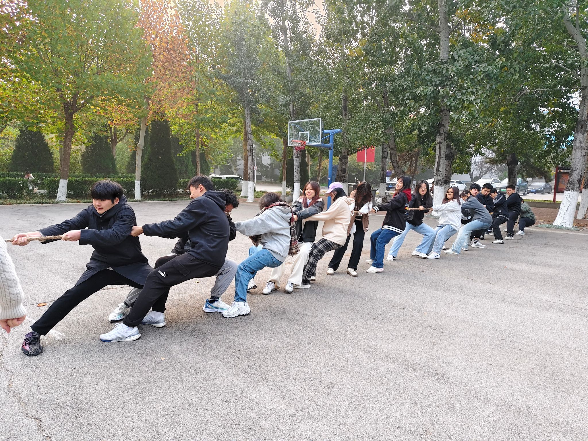秋阳杲杲,金风送爽。为丰富学生校园生活,增强集体凝聚力,培养学生集体荣誉感和团队协作能力,10月29日至30日早7:30,开云kaiyun登录入口与管理科学与工程学院在舜耕校区篮球场联合举办“团结一心,绳采飞扬”拔河友谊赛。