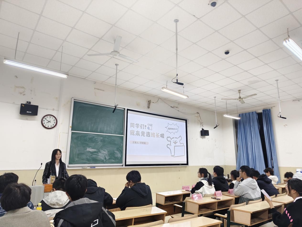 班委竞选伊始,24级新生辅导员吕龙飞对新生们进行了简短的动员讲话,强调了班委在班级管理中的重要作用,并鼓励同学们积极参与竞选,为班级建设贡献自己的力量。