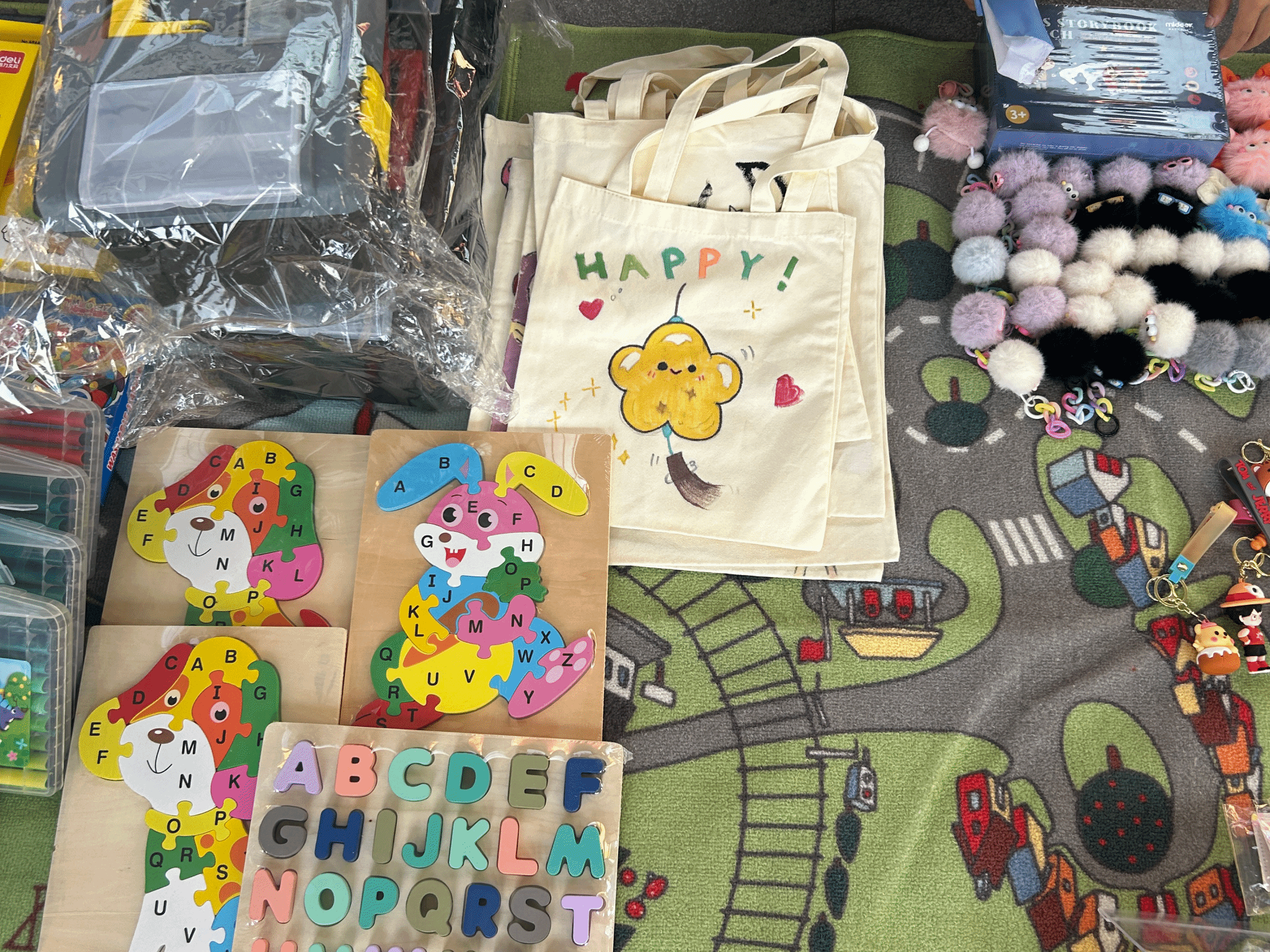 从晨曦微露到暮色四合,志愿者们以时光为笔,在9:30至17:30的光阴画卷上镌刻责任。他们是不知疲倦的“搬运工”,将一箱箱承载着希望的物资化作摊位上的星河——亲手搭建的展架上,扇子轻摇着夏日的诗意,风铃叮咚着童真的韵律,钥匙挂件闪烁着手工的温情。当阳光爬上他们汗湿的鬓角,他们又化身为灵动的“宣传员”,手持传单穿梭于人流,用微笑讲述康复中心与残障儿童的故事,让“每个孩子都该被世界温柔以待”的理念如春风拂过人心。