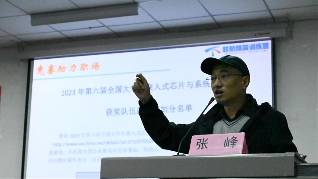 随后,张工深入讲解了学科竞赛的基本概念和重要意义。他指出,学科竞赛是一种以学术为基础、以创新为导向的竞赛活动,可以促进各学科的创新和发展,培养出更多的优秀人才。当前,全国大学生各类电子设计竞赛中均有“嵌入式技术”的身影。通过嵌入式芯片与系统在各领域的应用和创新设计,可以使学生全面掌握芯片设计、系统软硬件协同、应用方案设计优化等的相关知识和技能,丰富和活跃校园创新创业氛围,推动校企合作、产教融合、产教协同育人工作的开展,为社会培养具有创新思维意识、团结协作精神、解决复杂工程问题的优秀人才。之后,张工和师生们进行了互动交流,细心解答了关于嵌入式技术发展趋势等问题,并以自身的学习经历、经验,鼓励同学们学好基础课程并培养自主学习和终身学习的能力。