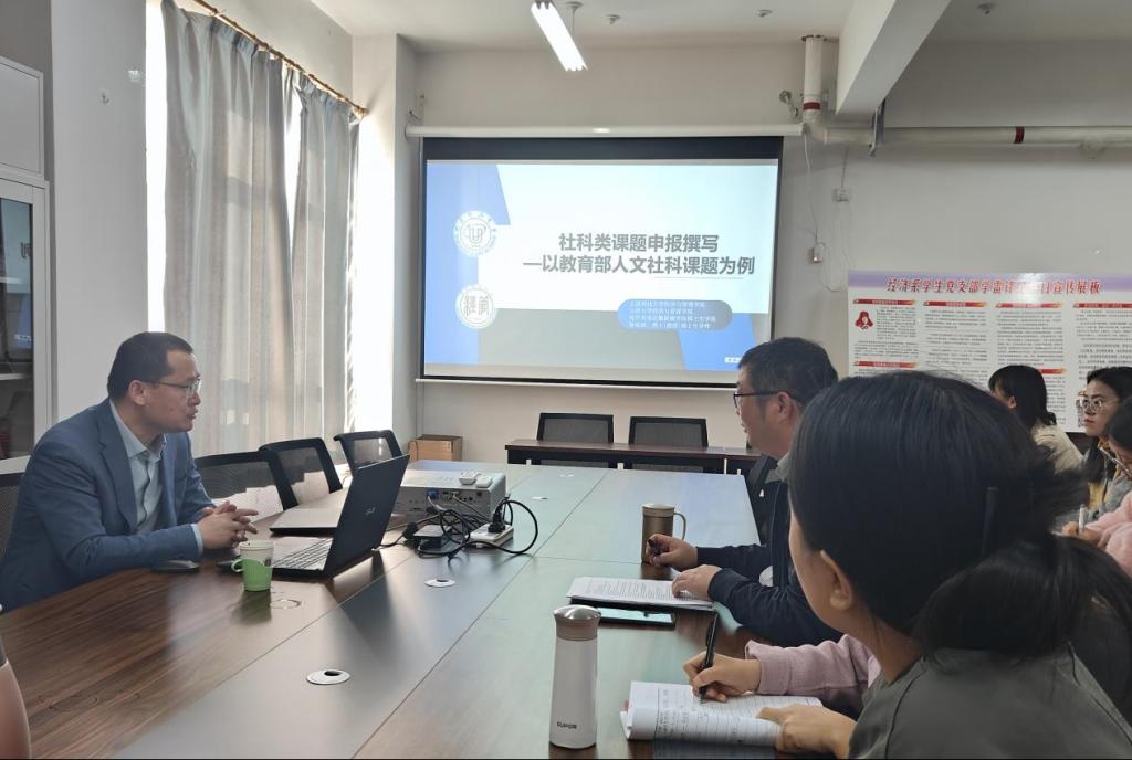 为进一步提升bat365官网青年文科教师和科研骨干的课题申报撰写能力,加强学术交流,开阔bat365官网青年文科教师的学术视野,提升青年教师科学研究水平。10月24日下午,由科技产业部主办、经济系承办的“能源大讲堂”系列学术讲座在教学楼2-3连廊2-215会议室举行。太原科技大学经济与管理学院鲁锦涛教授应邀作了题为“社科类课题申报撰写——以教育部人文社科类课题为例”的学术讲座,讲座由科技产业部副部长兼经济系行政负责人戴国宝副教授主持,他简要介绍了鲁锦涛教授的个人履历、学术研究方向及科学研究成果,并对鲁教授的莅临表示热烈欢迎。
