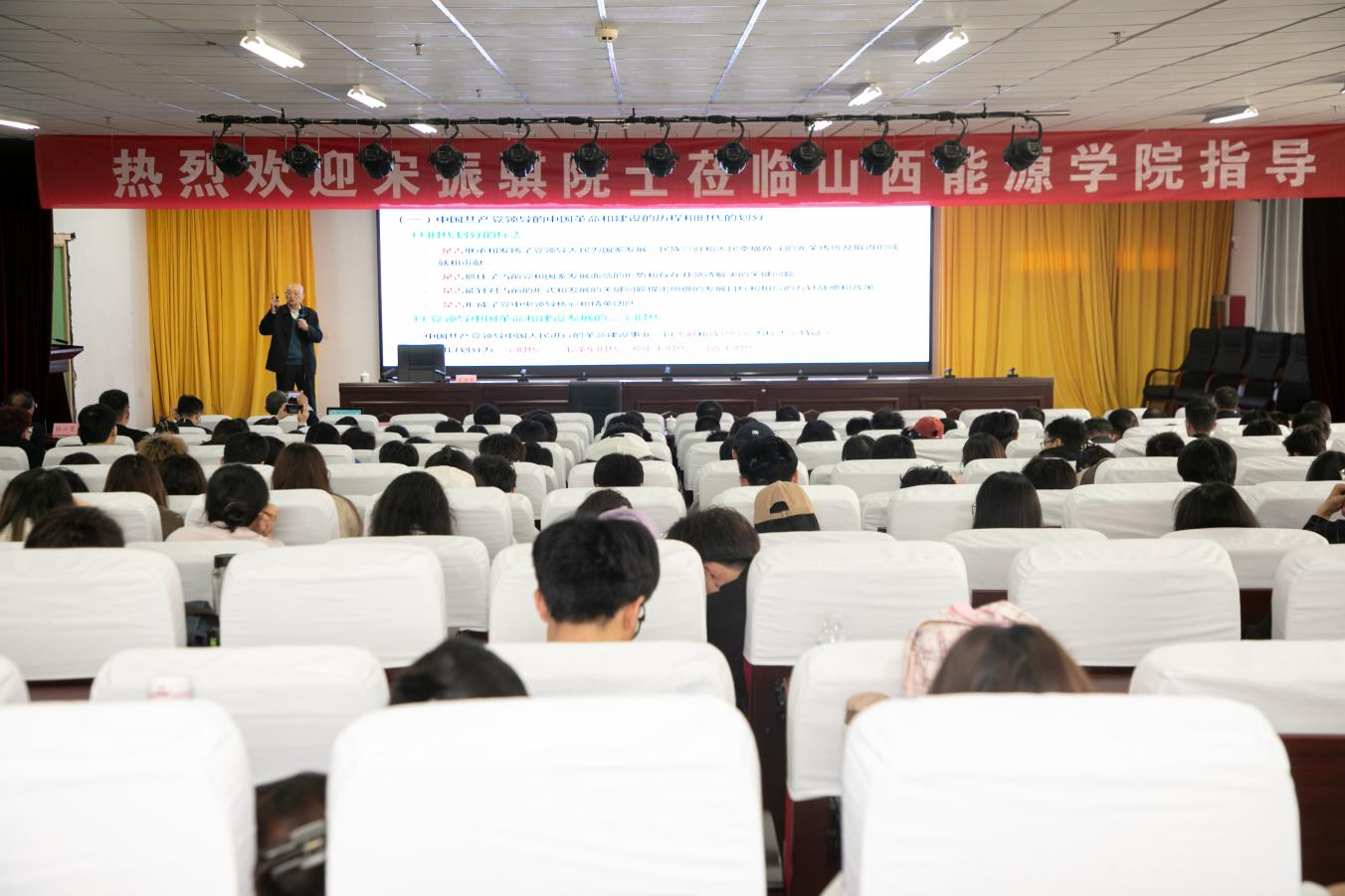 4月10日上午,中国科学院院士宋振骐教授在学院综合楼二层东报告厅为全校师生作“能源大讲堂”系列学术讲座——“新时代的特征和工程学子的光荣使命”专题报告。院长冯国瑞教授出席了报告会,副院长刘汉涛教授主持,相关部门负责人及200余名师生代表参加。