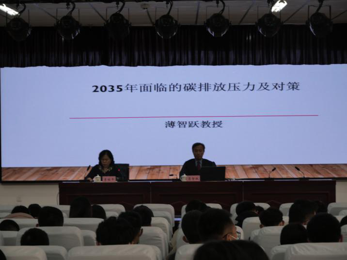12月2日下午3:00,中国精英政治研究领军人物薄智跃教授于我院综合楼二层东报告厅开展《2035年面临的碳排放压力及对策》专题讲座,本次讲座由我院副院长李桂平主持。各系老师、学生代表聆听学习。
