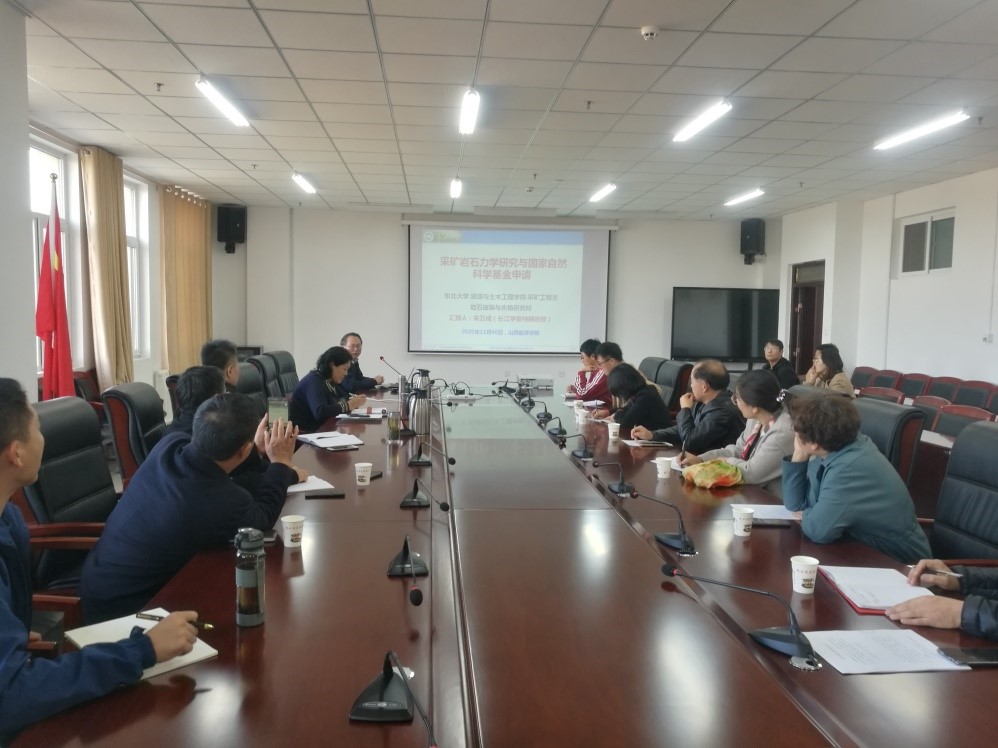 2020年11月6日下午,东北大学教授,博士生导师,教育部长江学者特聘教授,国家杰出青年科学基金获得者,“万人计划”科技创新领军人才朱万成教授应邀来我院做题为《采矿岩石力学研究与国家自然科学基金申请》的学术讲座。梁卫国院长等学院相关领导及教师参加座谈,李桂平副院长主持。