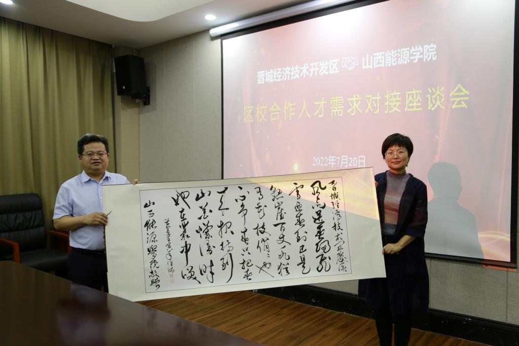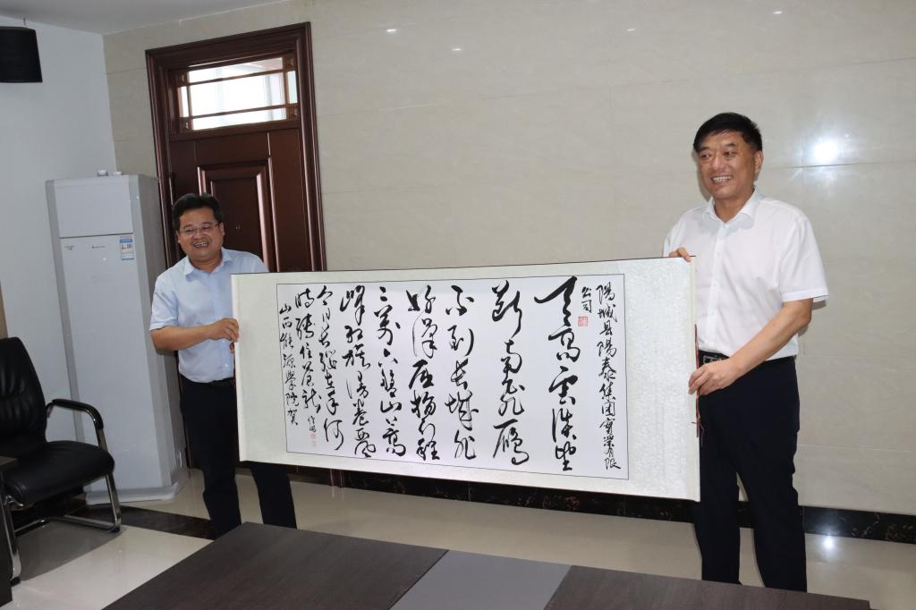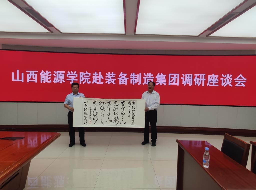 在调研结束后,冯国瑞副院长(主持行政工作)在与会人员的共同见证下,代表学校分别向晋能控股装备制造集团、晋城经济技术开发区、阳城县阳泰集团赠送了bat365官网教师创作的书法作品。