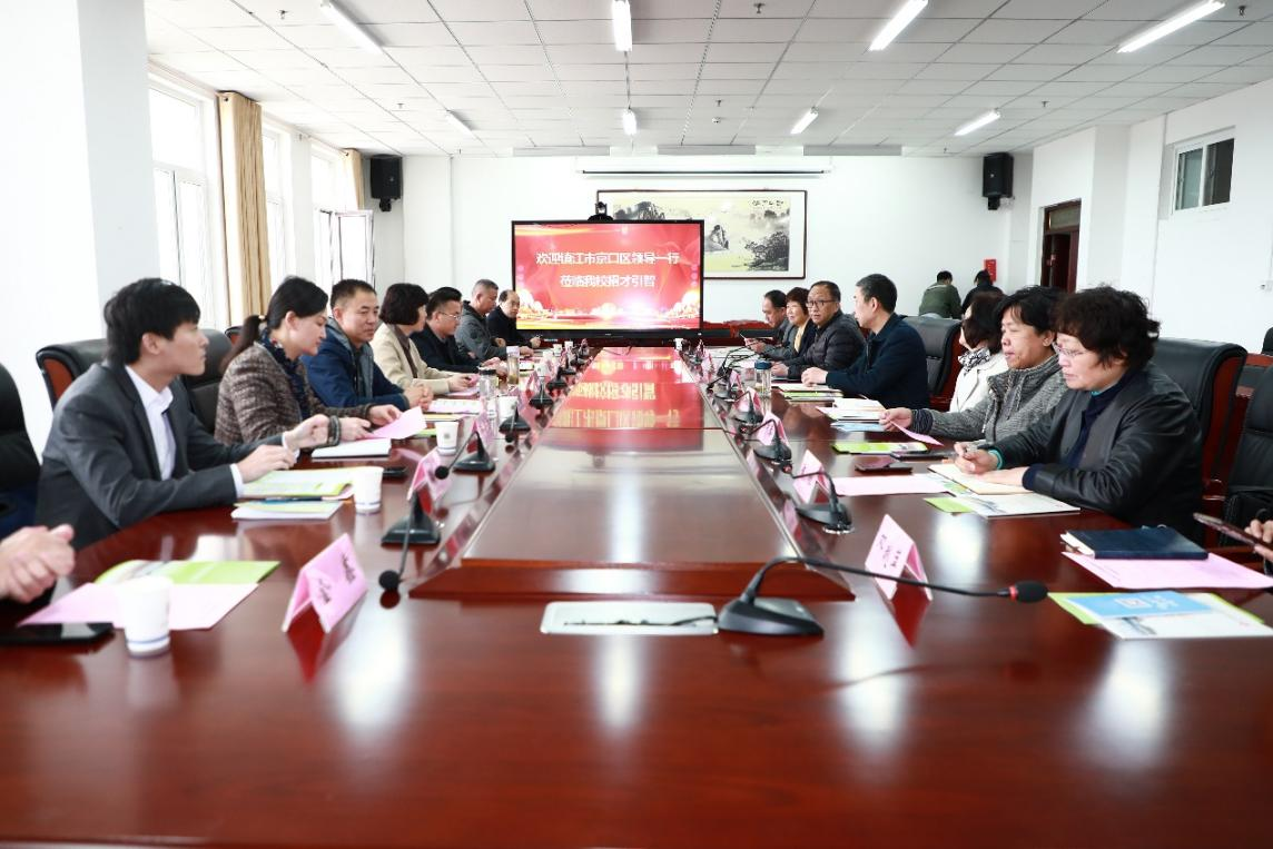 为深化校地合作,实现高校人才与企业需求的精准对接,引进产业需求的优秀人才,推动产学研深度融合,4月24日下午,镇江市京口区政府副区长宋小燕一行9人来bat365官网洽谈招才引智合作,学校副院长刘汉涛,学生工作部、科技产业部及相关系部负责人参加了会议。会议由学生工作部部长刘三川主持。