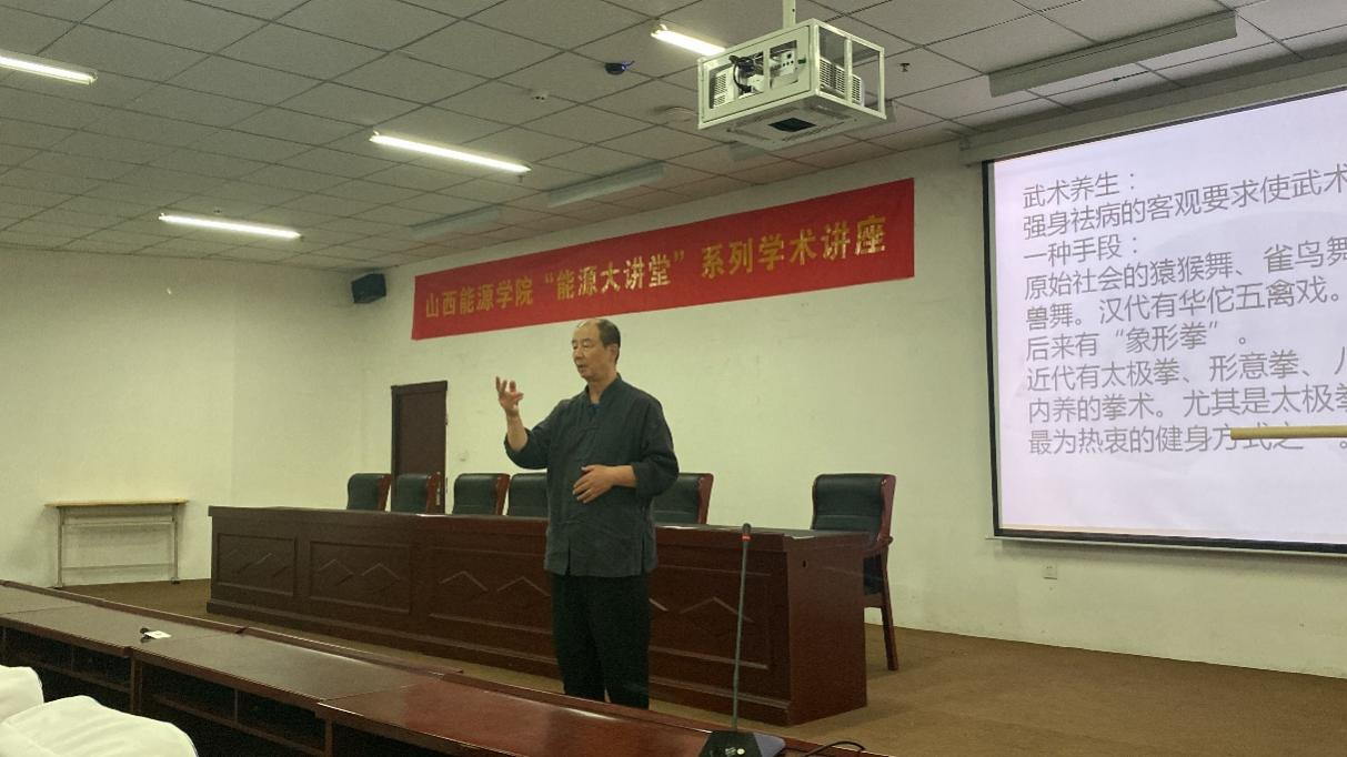为营造科研与学术创新的浓厚氛围,提高广大师生自我保健意识和健康水平。5月30日下午,由科技产业部主办,强基学院承办的“能源大讲堂”系列学术讲座在综一阶报告厅举行。山西大学体育学院毛明春教授受邀作了题为“太极拳文化与健身”的专题讲座。讲座由强基学院体育美育教研室主任毛磊主持,他介绍了毛明春教授个人履历和学术成果,并代表学校对毛教授的到来表示热烈欢迎。