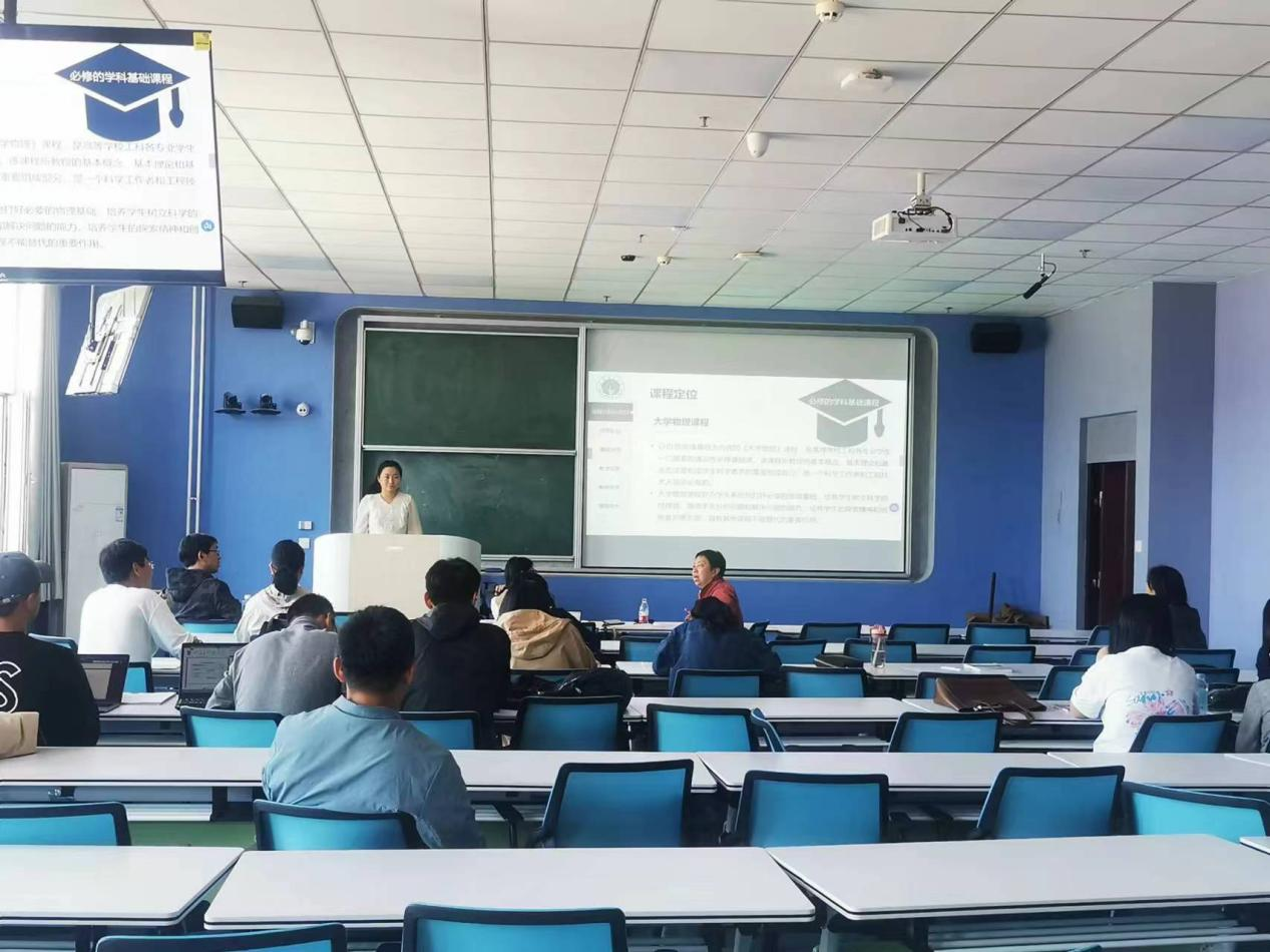 李红玉、于海宁两位老师分别对《大学物理》、《物理实验》课程从课程宗旨、团队建设、教学内容、实际应用、能源特色等几个方面进行汇报。同时提出要结合不同专业不同学科背景,优化教学(实验)内容,突出能源特色的计划,为学校应用型人才培养更好服务。