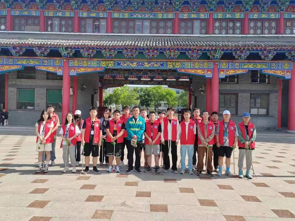 2023年5月13日下午一点半,同学们在三号教学楼集合领取工具,由各领队带领,徒步到公交站台,开始向玉湖公园进发。