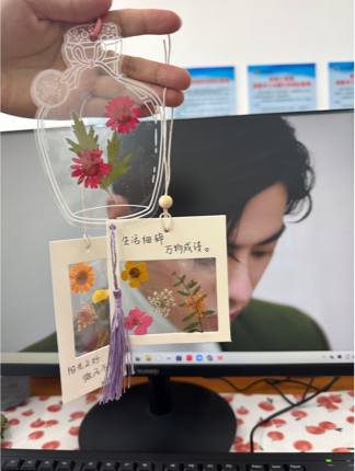 当书页的沙沙声与书签的窸窣声在空间里交织,这场融合美学与独创设计的手作盛宴,让每位老师都成为了生活的艺术家,手工DIY环节直接将活动推向高潮。在木艺笔筒制作中,老师们精心装饰专属笔筒,花样修剪的拼接过程让理工科教师展现出独特风格;干花书签制作区则成为艺术创意的舞台,老师们巧妙搭配永生花材,将四季芳华定格于方寸之间。活动现场欢声笑语不断,平日执粉笔的手此刻在艺术创作中展现出别样风采。