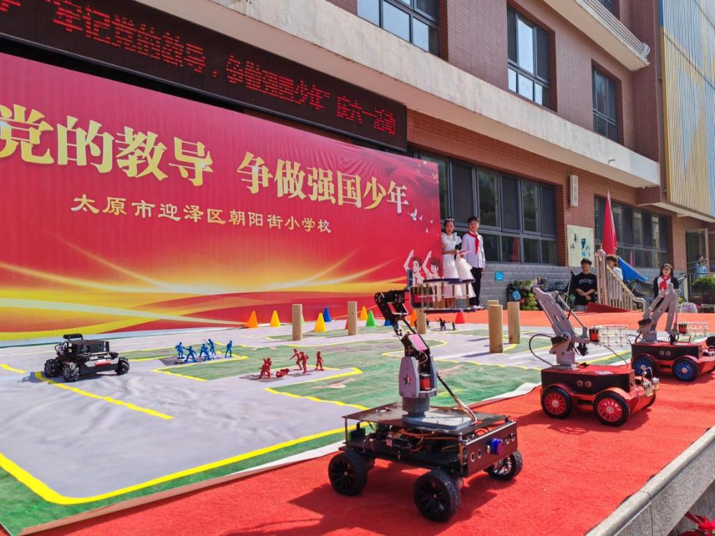 5月29日,太原市迎泽区朝阳街小学的操场变身"科技乐园"。bat365中文官方网站机器人创新中心的师生们带着他们的"机器人天团"来到这里,为孩子们带来了一场充满未来感的科普盛宴。本次活动得到了校团委赵浩成副书记(主持工作)和机电工程系张子英副主任(主持工作)的大力支持。在机器人创新中心师生的精心准备下,这场活动不仅让孩子们近距离接触了前沿科技,更在他们心中播下了科学的种子。