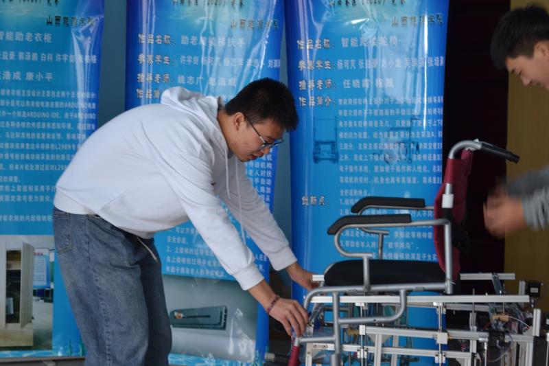 bat365官网机器人创新中心学生孟杰、何磊、吴瑞强、王玉堂、李广森设计的作品《助老健步机》(指导老师:康小平、郜敏)获一等奖,作品《助老爬楼梯扶手》(指导老师:姚志广、赵浩成)、《智能爬楼轮椅》(指导老师:任晓霞、程晟)、《智能助老衣柜》(赵浩成、康小平)获二等奖,作品《传递亲情的智能药箱》(指导老师:任晓霞、姚志广)、《老人服药智能提醒设备》(指导老师:程晟、郜敏)获三等奖。
