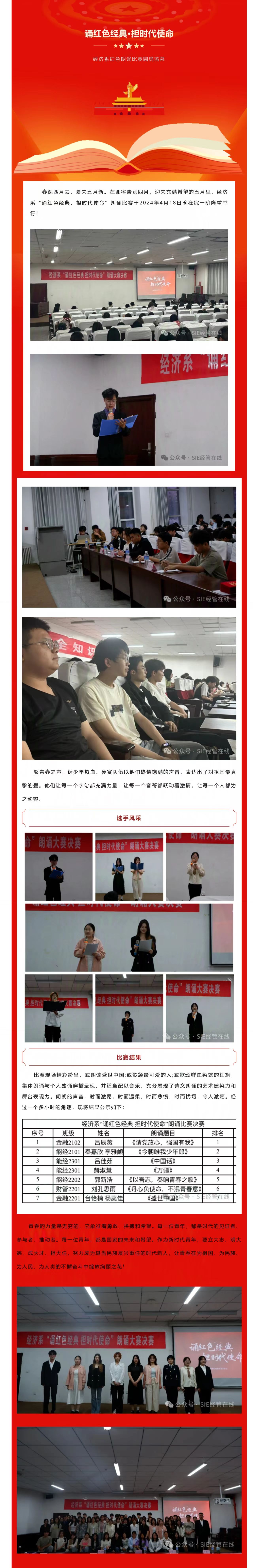 经济系“诵红色经典,担时代使命”朗诵大赛圆满结束