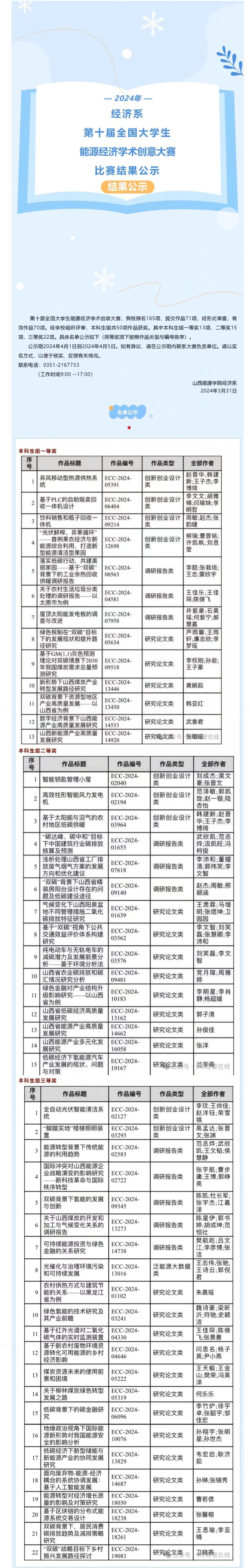 经济系第十届全国大学生能源经济学术创意大赛比赛结果公示
