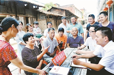 江西省玉山县纪委监委派出3个督查组深入全县各乡镇、村组,瞄准违规公款吃喝送礼、利用村级工程建设项目和扶贫款物发放等突出问题开展监督检查,推动全面从严治党向基层延伸。图为督查组在岩瑞镇包溪村向当地群众了解情况。(资料图片)