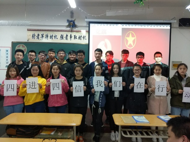级应用技术专业班级团支部于5月在1号教学楼1408教室开展的“四进四信” 主题团日活动