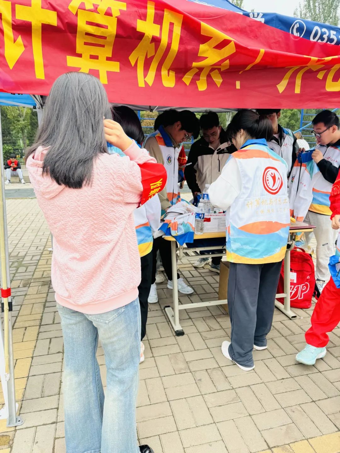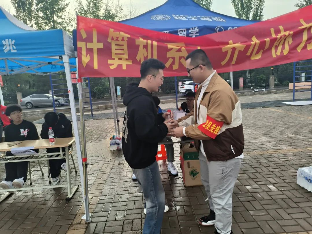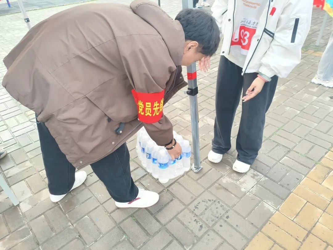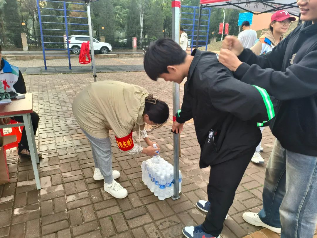 在休息区,党员先锋们化身贴心的“后勤兵”,递上一瓶瓶清水,送上温暖的关怀,让每一位参与者都能感受到家的温馨.
