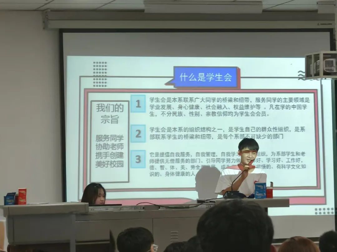 为了使新生们更深入地了解学生会的运作机制,青志部、学习部、新媒体部、体育部、文仪部等多个部门的负责人依次上台发言,详细介绍了各自的职能范围、工作重点以及团队文化。例如,体育部着重于策划和执行各类文艺体育活动,学习部致力于促进学术交流和学习资源的共享,新媒体部关注校园的日常活动并予以记录,同时对外宣传沟通和形象建设。
