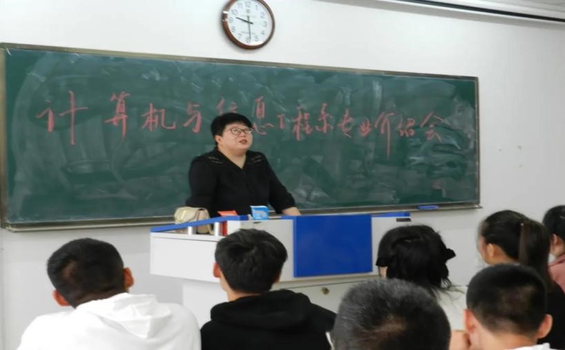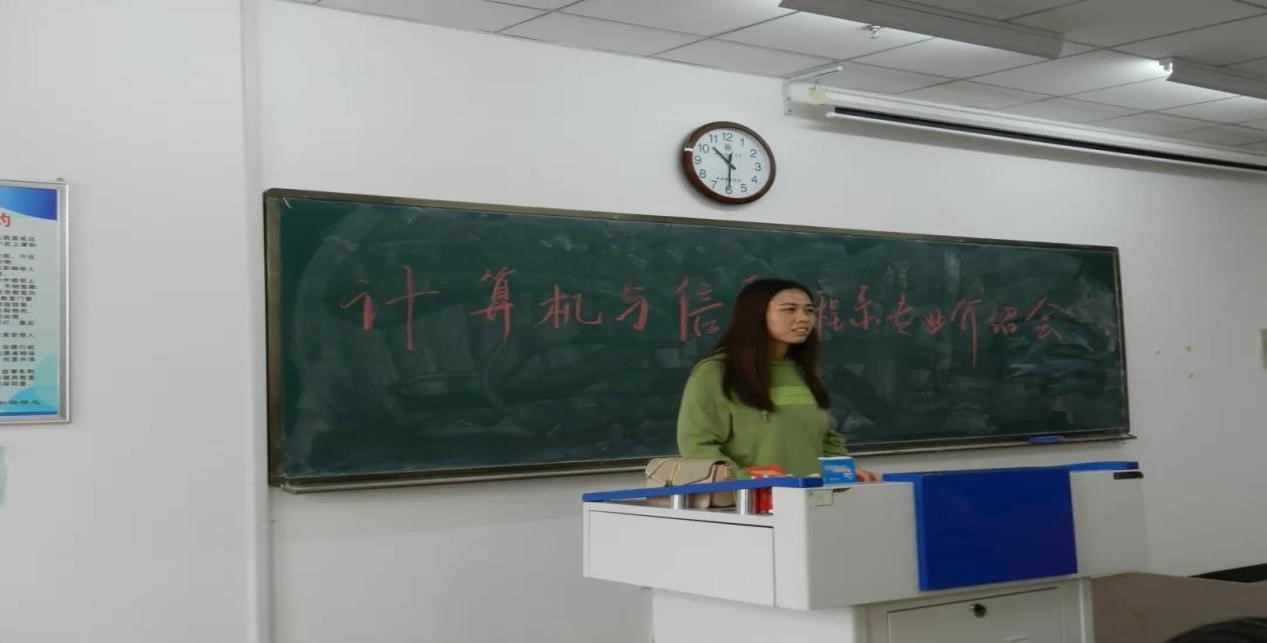 为了让我系2021级新生更好更全面地了解大学生活,9月18日9点,计算机与信息工程系新生专业介绍会在综705如期举行。参加此次介绍会的有系主任邓越萍、系副主任史明、信管教研室主任李芳、区块链教研室主任闫斐、专职辅导员赵彩霞。活动伊始,主持人赵彩霞老师介绍到场领导并宣布介绍会开始。