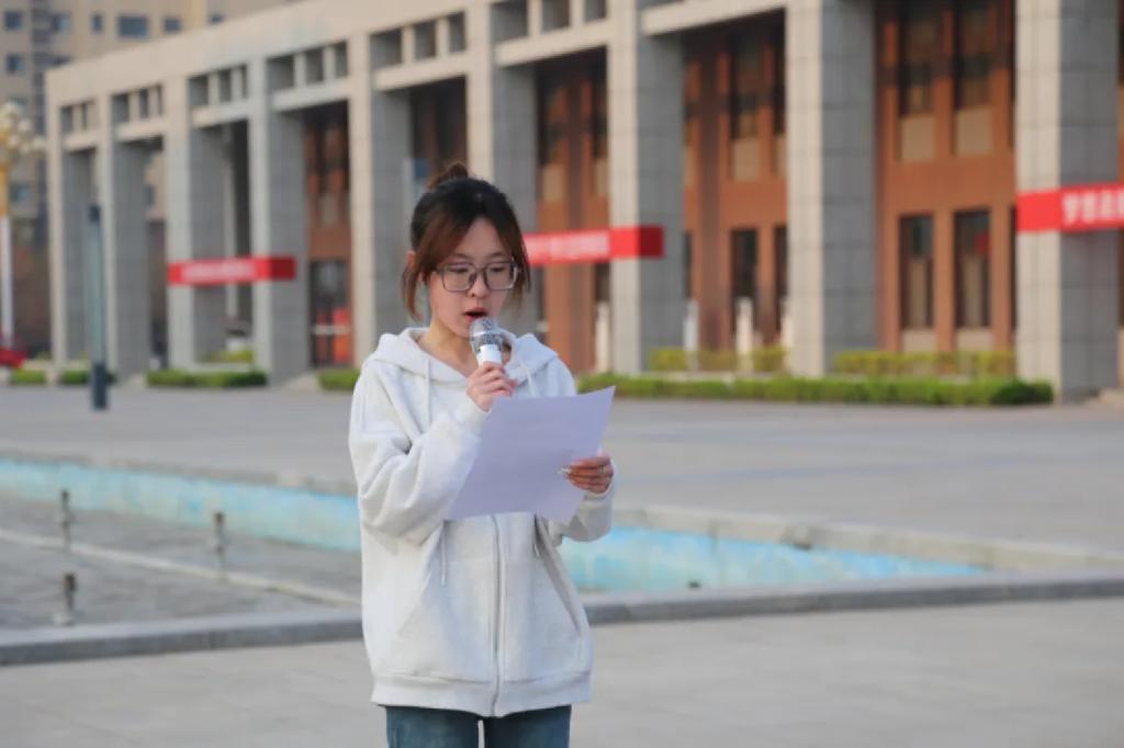 bat365官网计算机与信息工程系信管B2202班的张佳莉在国旗下做了发言。