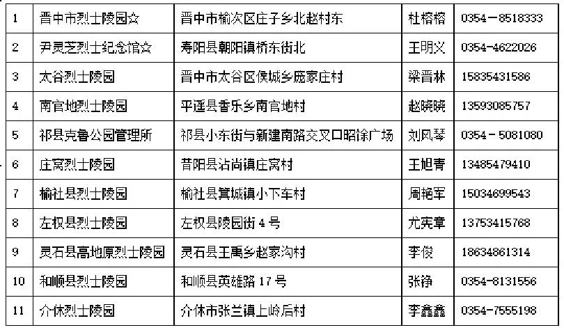 清明节期间,各地烈士纪念设施正常对外开放,为有效应对人流量变化,保障清明烈士祭扫安全平稳有序,晋中市各级烈士陵园现场祭扫将采取电话提前预约登记的方式保障烈士祭扫、纪念活动。